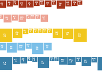 Each state is shown as a colored square with its allotted number of electoral votes. By moving states from undecided to either red or blue you can explore different potential election outcomes.