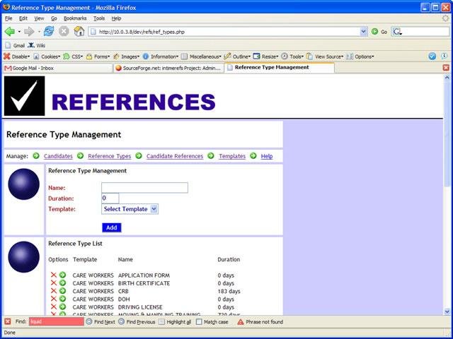 Reference and Document Management System that monitors current skills, licenses, checks and references of potential employees. Provides heads-up information about which references are expiring and when so employee cannot working illegally.