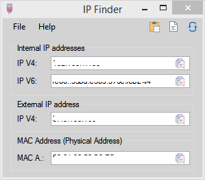 IP Finder is a software that lets you check your internal and external IPs and MAC Address (Physical Address).