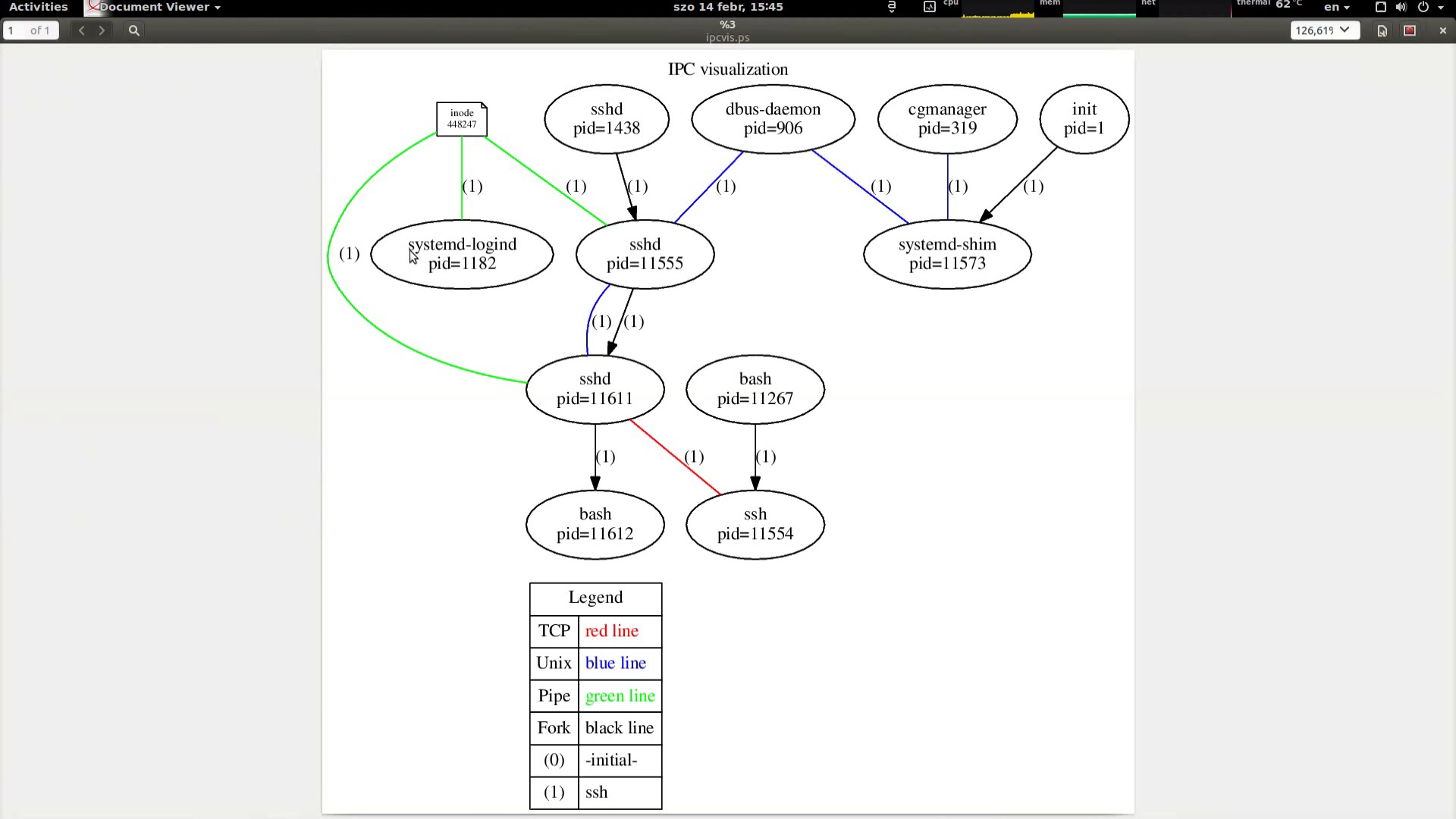 Small python script that can visualize Inter Process Communication on Linux. It can create a graph of TCP and Unix sockets, pipes and also process hierarchy.