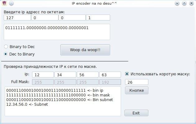 The program for converting ip addresses in a binary kind and on the contrary.
