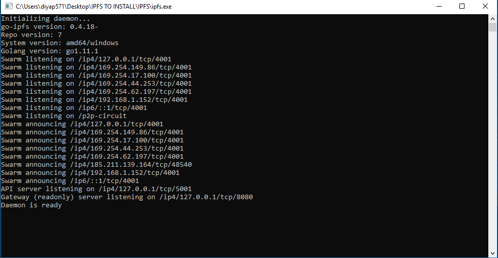 All you have to do is download the IPFS zip and extract the files and click the install.bat file. That is it, you are done with the installation. Now you can start.bat file to start IPFS and stop.bat to stop the program.