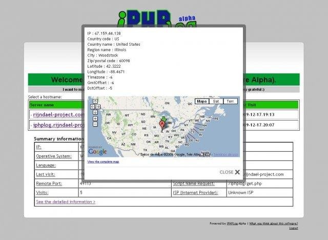 IPHPLog (IP PHP Log) is a simple software written in PHP, JS and SQL that runs over a MySQL database manager system . IPHPLog can log the information of your visitors and organize that on a data base with GeoIP.