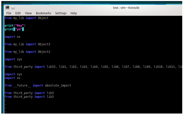isort is a Python utility/library to sort imports alphabetically, and automatically separated into sections and by type. It provides a command-line utility, Python library and plugins for various editors to quickly sort all your imports. It requires Python 3.6+ to run but supports formatting Python 2 code too. Several plugins have been written that enable to use isort from within a variety of text-editors. You can find a full list of them on the isort wiki. Additionally, I will enthusiastically accept pull requests that include plugins for other text editors and add documentation for them as I am notified. As of isort 3.1.0 support for balanced multi-line imports has been added. With this enabled isort will dynamically change the import length to the one that produces the most balanced grid, while staying below the maximum import length defined.