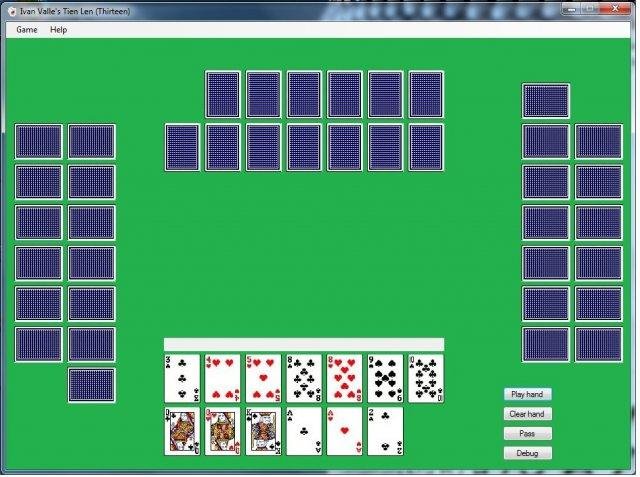 Tien Len (Thirteen) is a card game where the goal is to get rid of your cards by creating ladders of cards against your opponents. Written in C# for Microsoft's .NET Framework version 4.