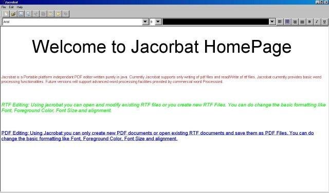 Jacrobat is a free open source PDF editor that will support all functionalities of a simple word processor. Advanced functionalities will be added as the project matures.