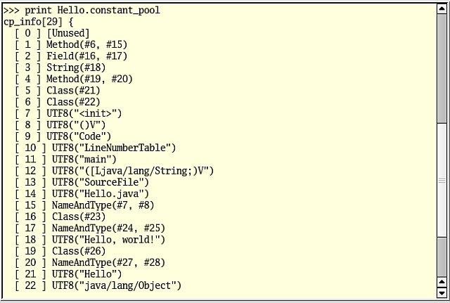 Java Classfile assembler/disassembler and low-level interactive editor. Allows viewing and manipulation of Java class data both manually and via scripts. Load in a class file, make changes, and then save the result.