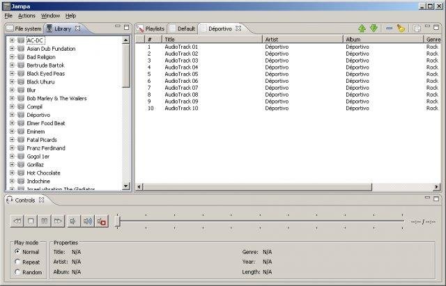 Jampa is a music player, focused on the use of playlists. It maintains a set of playlists wich can be easyly retrieved and managed through the dedicated view. Jampa needs a Java Runtime Environnement.