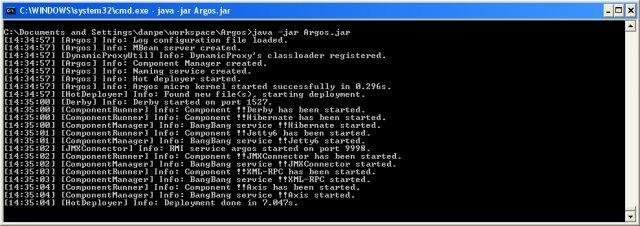 Argos is a middleware system that lets you easily create and deploy software components, webpages, widgets, J2ME applications and panels and bind them together into services. Argos uses a microkernel that enables developers to extend the system functiona