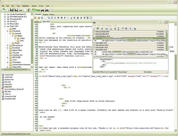 Jase is a multi purpose, tag based web editor. You may use it for all kinds of plain text files. Jase is not bloated but offers you the features you really need, like tidy integration, internal previews, list and table generators and much more.