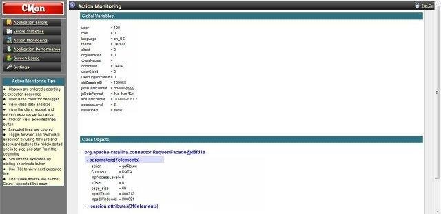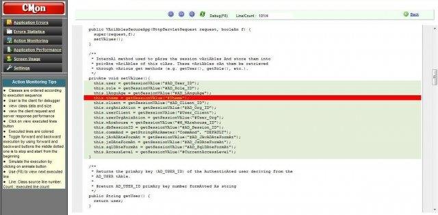 a java based monitoring tool,logs all the user actions and errors with runtime data, displays execution performance and executed method lines. It doesnt modifiy class source files and no need for coding, just put it in your class path and see the mir