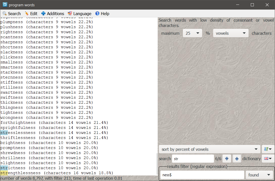 Java words is helper program for searching interesting words from one or two dictionaries using different search options.