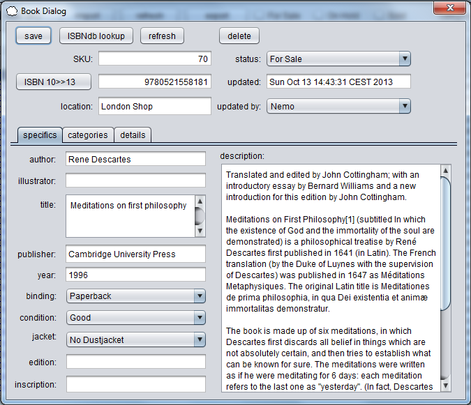 JeBayLister is a multiplatform eBay lister (similar to TurboLister). Ebay API exports from JBookCloud import into JeBayLister.