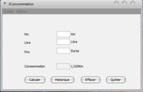 The project JConsommation is a program written in Java with a graphical interface which allows you to calculate and store the results of the consumption of your vehicle.