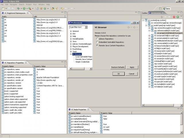 A handy Apache2 licensed Eclipse based tool to display and search (not to edit) the content of a JSR 170 ( see: http://www.jcp.org ) compliant Java Content Repository. It is stable and supported since 2006. It does not support Jackrabbit 2.0.