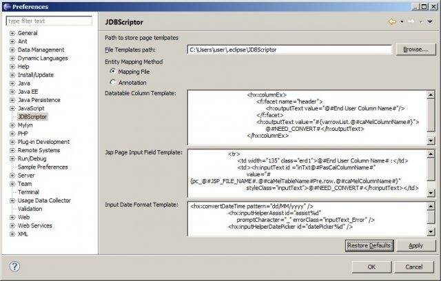 This Eclipse plugin read db information from a configuration file, connect to database and read metadata information than generetes JavaBeans, Control Class, Hibernate mapping file and optionally jsf based jsp file and its pagecode class. (Oracle and Mysql supported)