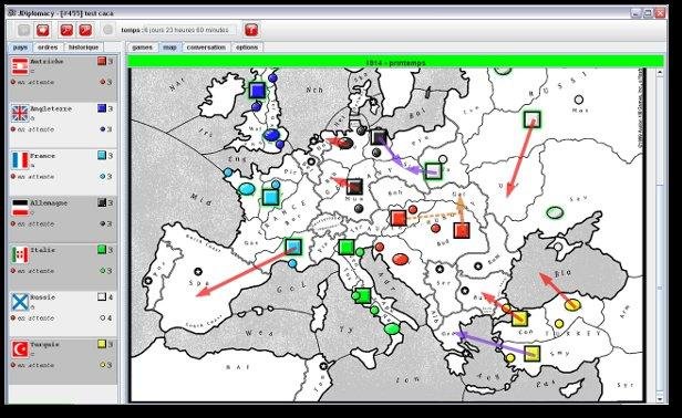 JDiplomacy is a multiplayer, online version of the famous strategy game. 1 To 7 players. A Java client connected to a Google Appengine application.