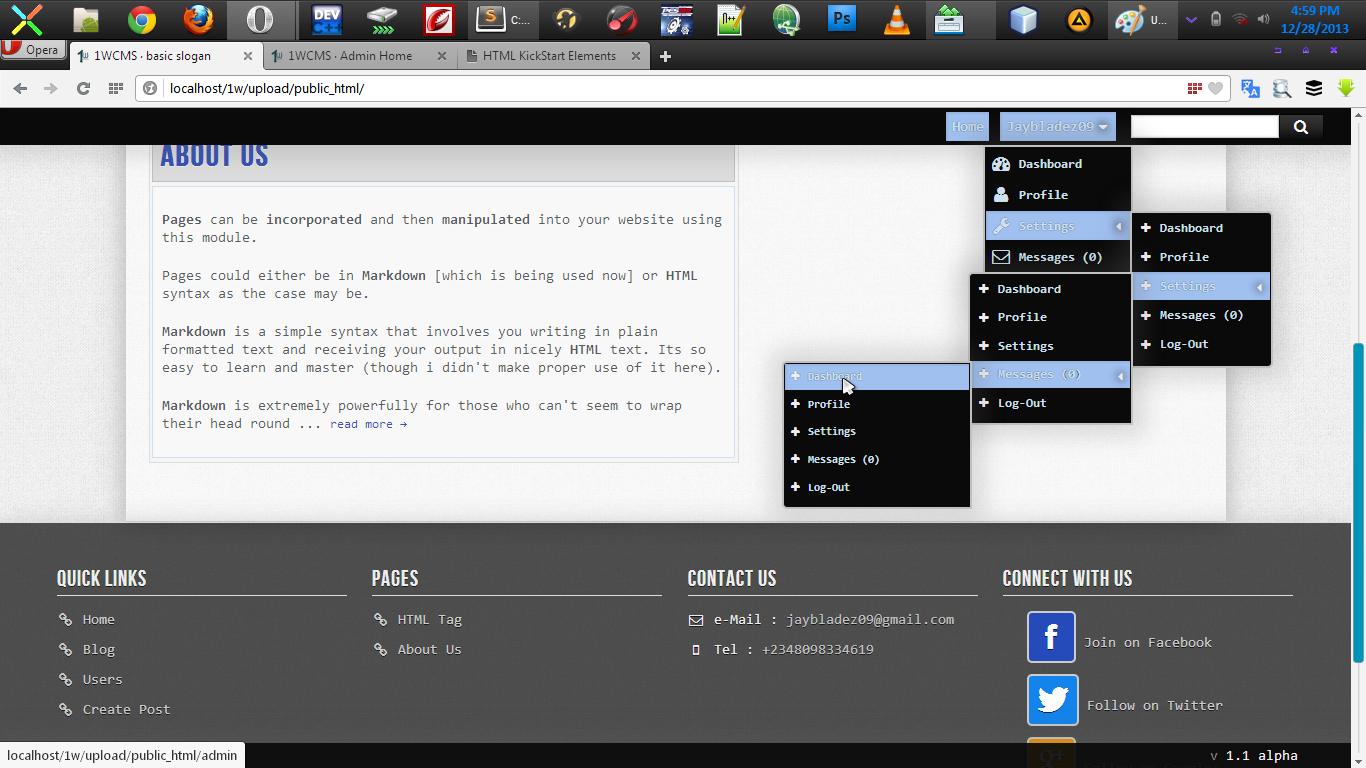 Dropdown menu's could go at most 4-levels down (could be extended by reading the CSS file). Its easy to use and would still work without javascript enabled.