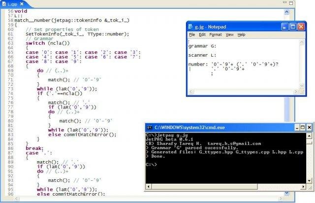 JetPAG is a recursive-descent parser and lexical analyzer generator focused on high efficiency, usability and readability of generated code. JetPAG generates fast recognizers and aids developers with useful tools for simplifying input interpretation.