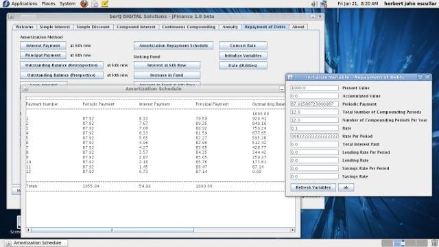 jFinancialCalc is a java-based software designed for common people, students, teachers, businesses, and professionals as help in solving common and basic financial problems.