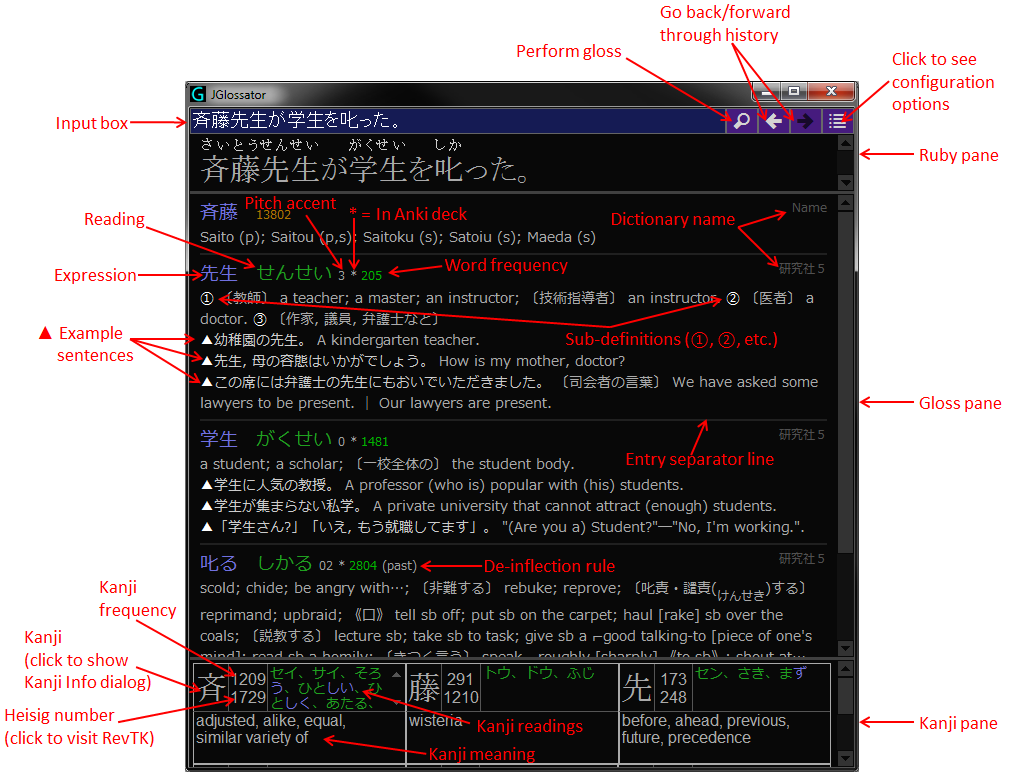 JGlossator can create a gloss for Japanese text complete with de-inflected expressions, readings, audio pronunciation, example sentences, pitch accent, word frequency, kanji information, and grammar analysis. See http://jglossator.sourceforge.net/ for more information and screenshots. Inspired by Translation Aggregator, but aimed primarily at people learning Japanese.