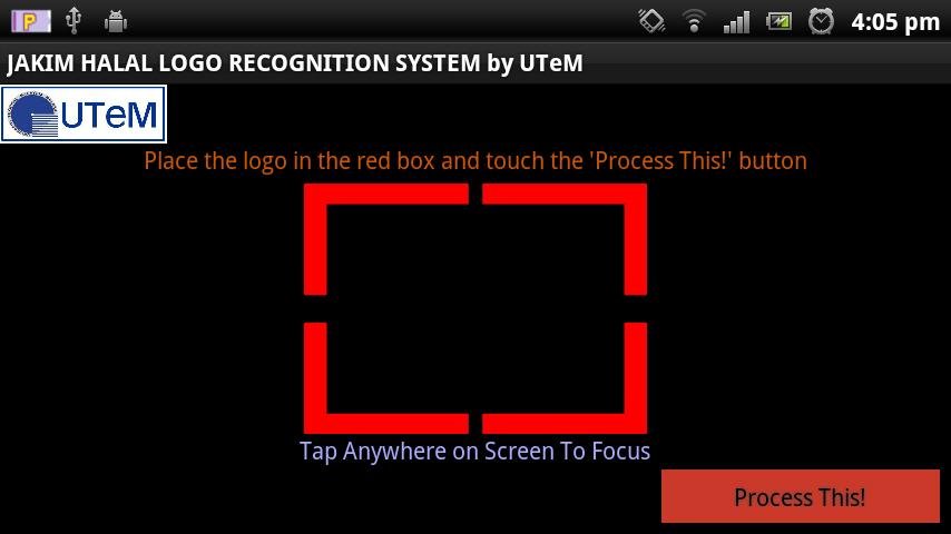 The present invention is an application for Android platform that recognizes Jakim’s Halal logo and acknowledge users whether certain logo is Jakim’s Halal logo or not using embedded system technology, real-time processing, computer vision, pattern recognition, and machine learning algorithm just by taking the picture of any Halal logo.