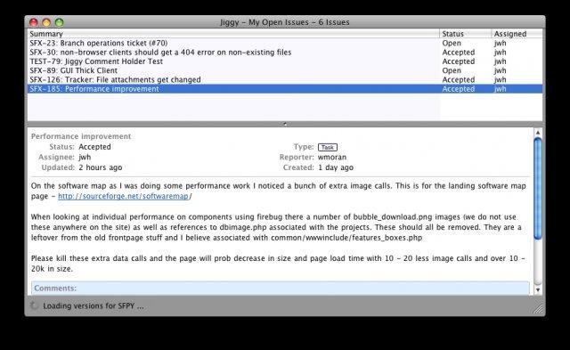 Jiggy is a cross platform JIRA client designed around a developers daily activities. Basic functionality includes creating issues, adding comments, and progressing workflow!