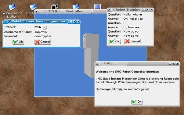 JIMO(Java-based Instant Messenger One), supports multiple protocols via services, including AIM, MSN, Yahoo, IRC. It is flexible through its plugin architecture, with an intelligent agent, Chatbot.