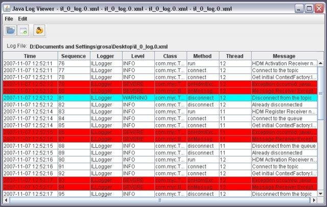 "Java log viewer" is a GUI to easily view the java application logs generated by the "java.util.logging" package. The log must be formatted by the XMLFormatter class. It provides facilities in order to filter, to sort and to find log records.