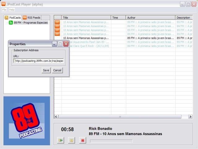 RSS PodCast reader and player. RSS 2.0 Feed Reader. Supports ITunes Podcasting
