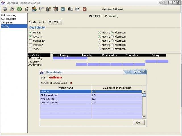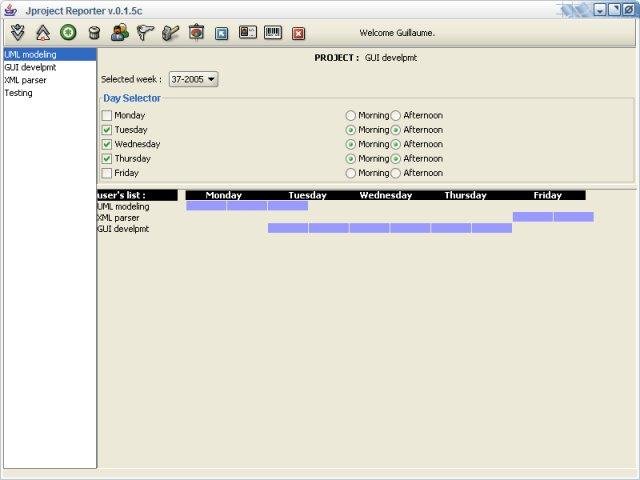 Jproject Reporter is an tiny('Ms project style') app which can be used to manage/follow/report projects. It allows any user to enter tasks done during the week using a shared tasks' list. Every users can view days spent , or workmate's spent time on