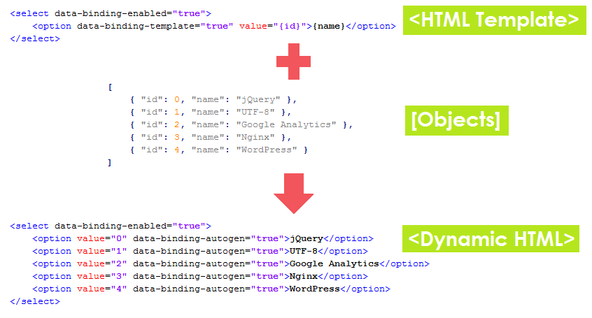 A jQuery plugin to generate dynamic HTML contents from an array of JavaScript objects.