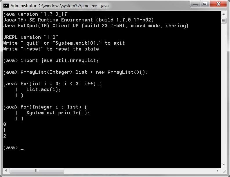 JREPL is a Java REPL (Read Evaluate Print Loop). It is a lightweight tool that allows you to write lines of Java code and execute it immediately. The written code is treated as if it were written in a Java main method.