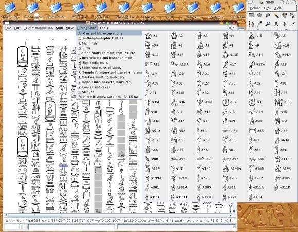 JSesh is an ancient Egyptian hieroglyphic text processor, currently used by professionnals and amateurs alike. It runs on all platforms supporting java (Mac, Windows, Linux). It can be used as a library for your own softwares too.