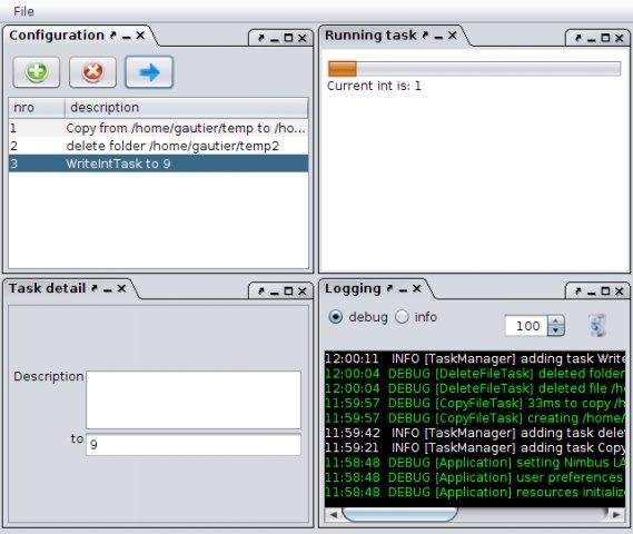 This program executes some basic tasks at the same time. For the moment, only "copy directory (with structure)" and "delete directory" are implemented tasks. You can also save your list of tasks. The list tasks could be enhanced if needed.