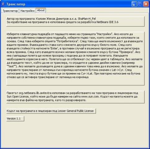 This is a program for transliteration between cyrillic (Bulgarian version) and latin (English version) alphabets.