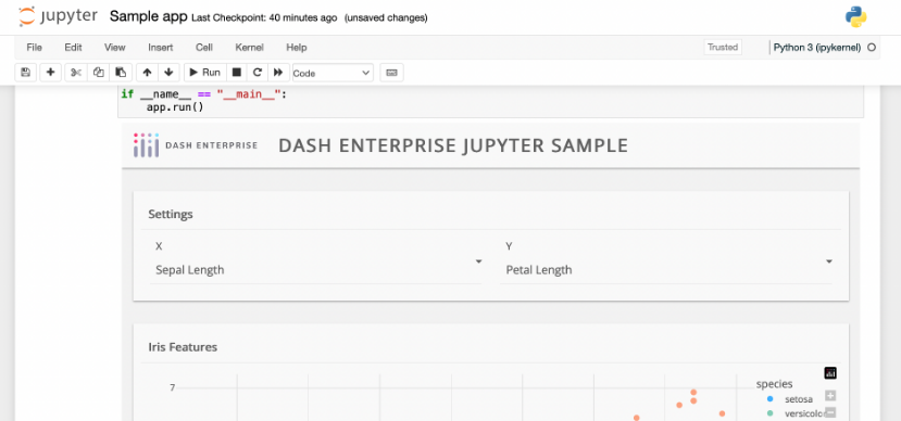 Dash 2.11 and later supports running Dash apps in classic Jupyter Notebooks and in JupyterLab without the need to update the code or use the additional JupyterDash library. If you are using an earlier version of Dash, you can run Dash apps in a notebook using JupyterDash. This page documents additional options available when running Dash apps in notebooks as well as troubleshooting information.