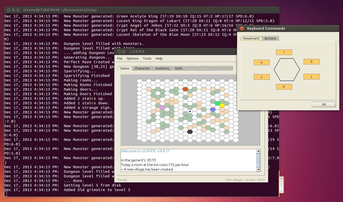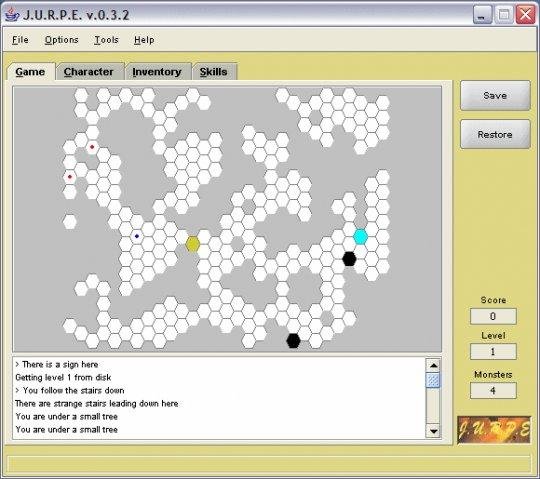 JURPE (Java Universal Role Playing Engine) is a Java API to support the writing of new computer RPG games based on a skill based, three dice RPG system. It comes with a full featured game demo of a medieval warrior crawling into a monster filled dungeon