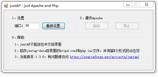 justAP是一个简单的、易于使用的php运行环境,适合php开发人员使用。与wamp、xampp等不同,它仅仅包含Apache httpd和Php,这也是它名字的来由(justAP=just Apache and Php)。