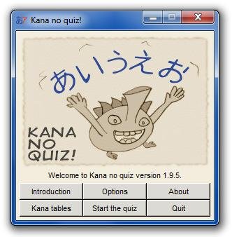 Kana no quiz is a little educational tool to memorize the transcription and pronunciation of Japanese kana (katakana & hiragana), presented as a quiz. It is written in Python and uses a GTK+ interface for a nice cross-paltform rendering!