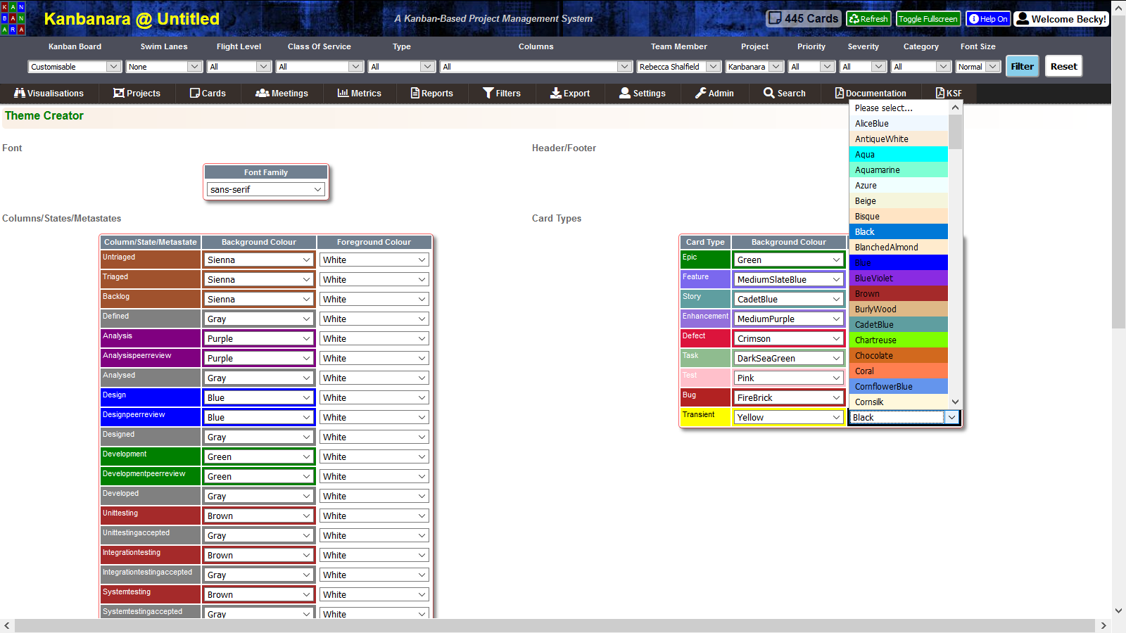 Kanbanara, a web-based Project Management System, uses the Kanban methodology. Started in 2013, the product is already quite well advanced. It is written in Python 3.7+ and utilizes MongoDB and CherryPy. Its Kanban board features projects, user-definable workflow with custom states, support for epic, feature, story, enhancement, defect, task, test, bug and transient cards, global and personal WIP limits, role-based columns (Owner, Reviewer or Quality Assurance), support for ghost cards (cards on their way to you or your own cards currently being reviewed or in QA), blockable cards, hidable cards, deferable cards, 46 card styles including a customisable one, 14-day future projection, Gantt Chart andcard backdrops. It also features a hierarchical workflow, global filter, backlog pyramid, force-directed graphs utilising d3.js, report generator, routine card manager, pair programming, support for continuing cards from one project to another. Full documentation in HTML and EPUB formats.