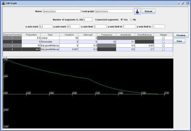 - User-definable graphs are widely used in the program; for example, for control of volume and pitch envelopes, and for shifting the balance of stereo over time.