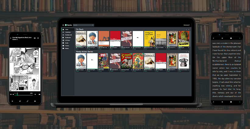 Kavita is a fast, feature-rich, cross-platform reading server. Built with a focus on manga and the goal of being a full solution for all your reading needs. Setup your own server and share your reading collection with your friends and family. Lighting fast with a slick design, Kavita is a rocket-fueled self-hosted digital library that supports a vast array of file formats. Install to start reading and share your server with your friends. Quickly resume your reading from your homepage, and get to your reading lists and collections. Serve up Manga/Webtoons/Comics (cbr, cbz, zip/rar, 7zip, raw images) and Books (epub, pdf). First-class responsive readers that work great on any device (phone, tablet, desktop). Dark mode and customizable theming support. Provide hooks into metadata providers to fetch metadata for Comics, Manga, and Books. Metadata should allow for collections, want-to-read integration from 3rd party services, genres. Ability to manage users, access, and ratings.