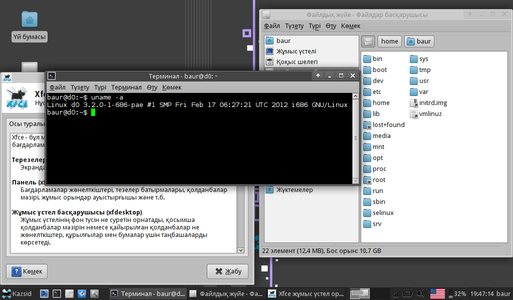Kazsid is a Debian GNU/Linux-based LiveCD with Kazakh language included.
