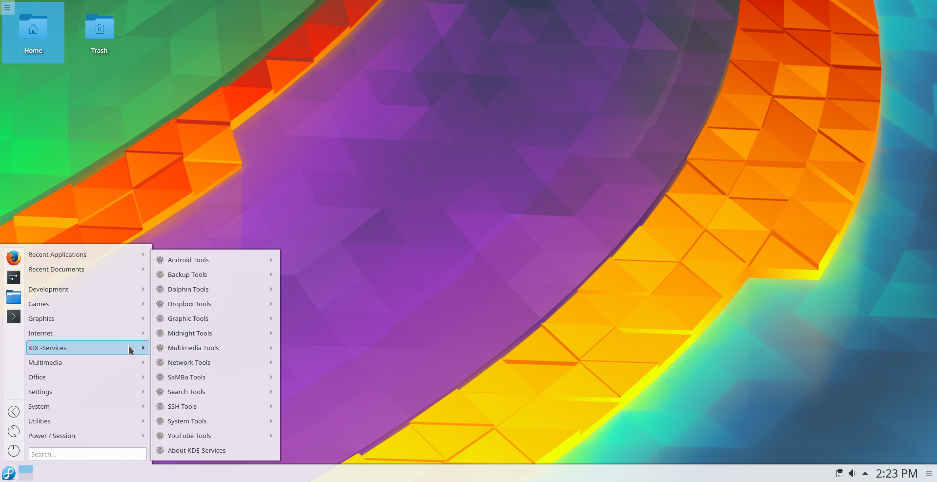 - Submenu "Actions" => "KDE-Services" (it is shown when clicked any file/dir).