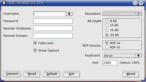 kderdesktopgui is a kde frontend GUI for the rdesktop application. Now includes sound support (with rdesktop 1.4.1)