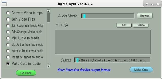 'kgmplayer' is a Media Player and a media toolbox for Linux, based on'Mplayer' , ffmepg and a long list of many other open source projects and built using Kulina Graphics Library ( 'kglib' and 'kgdevelop'). It tries to hide the complex options of 'Mplayer' and provide (hopefully) an effective and simple interface to the user to play the media. It handles the input source like CD/DVD and output connections like HDMI.'kgmplayer' tries to include all dependencies and binary is statically linked with kulina libray and its dependencies and should run on any 64bit distribution like Debian, Ubuntu,Fedora etc. 'kgmplayer' is designed for a compositing window manager, but works without a compositor. The binary tar ball and the debian packages are available under files, they are for 64bit Linux. Source is under code. Also a source tarball is provided in addition to the binary tar ball. The source tar ball is believed to be self contained and a simple 'make' should do the job.