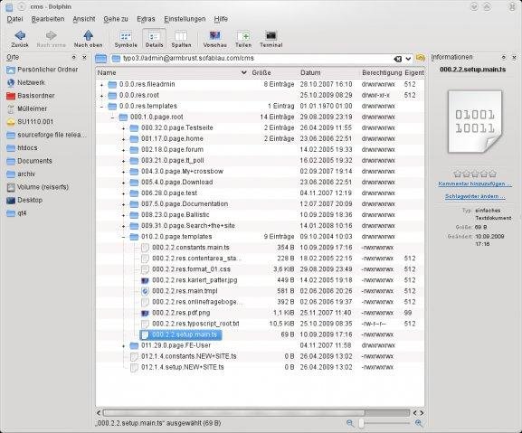 Provides access to the TYPO3 templates like a file tree. The fields setup and constants are shown as normal textfiles. It uses the TYPO3 extension hr_kde_vfs which provides a xml rpc interface for a file system.