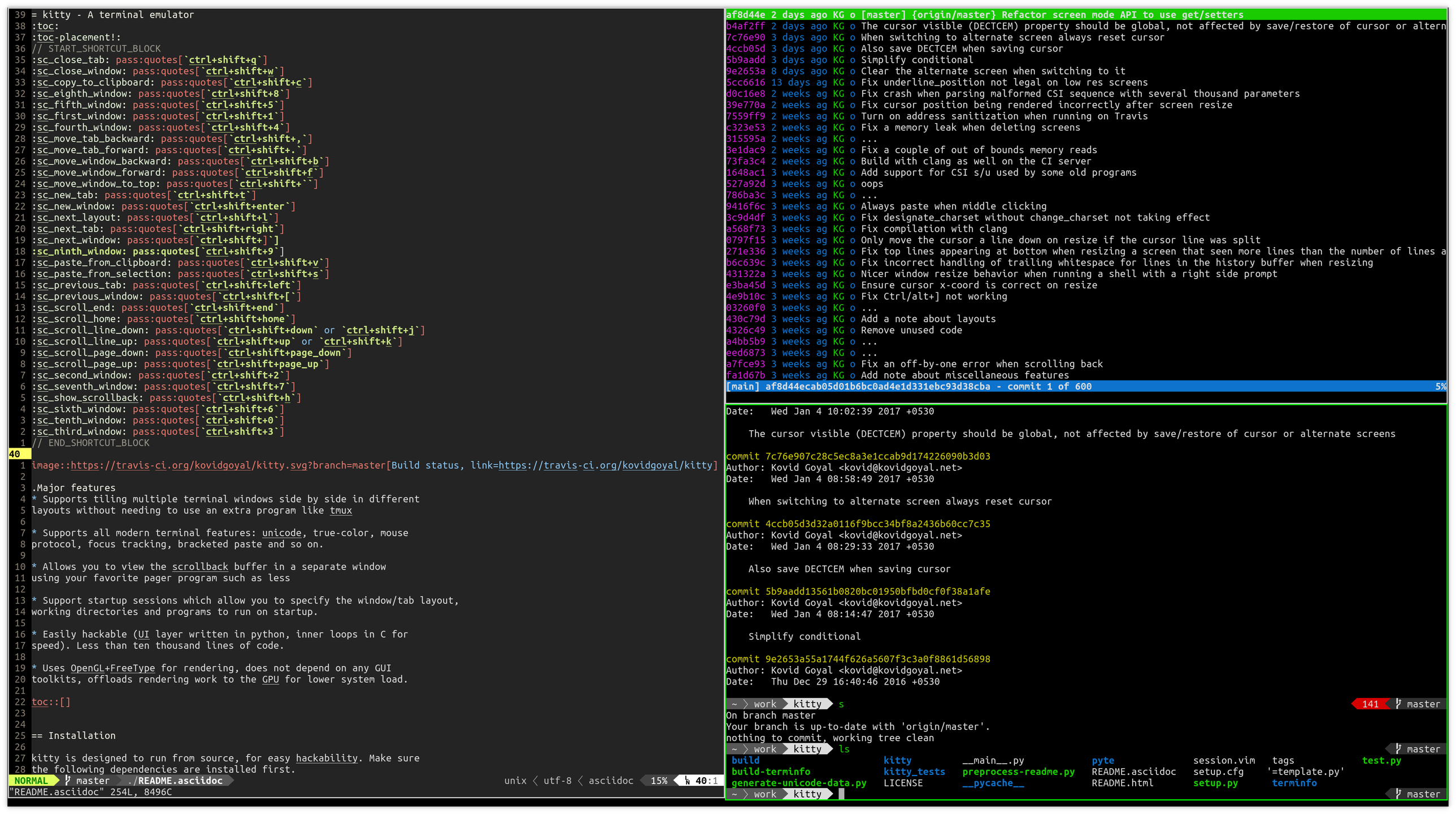 Kitty is a fast GPU based terminal editor that allows you to offload rendering to the GPU for lower system load. Kitty works on Linux and macOS and uses OpenGL for rendering which makes it portable to other platforms similar to Unix.