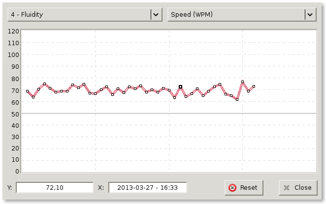 A touch typing tutor very flexible, supporting customizable keyboard layouts. You can edit and save new or unknown keyboard layouts, as the basic course was designed to not depend on specific ones. Also, there are some charts about the learning process.